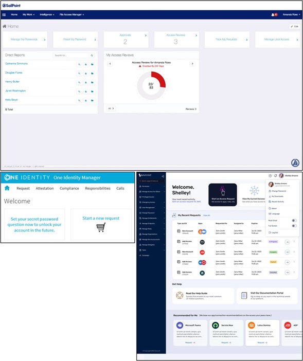 Ex :les collaborateurs auront une interface personnalisée permettant une gestion simple de leur propre identité, de leurscomptesethabilitations.Lesmanagersaurontuneinterfacedifférentepourgéreralafoiscequilesconcerneetce quiconcernelesemployésqu’ilsmanagent.Enfin,lesresponsablesd’UOaurontuneinterfacepermettantdevisualiser plus facilement les différentes identités qu’ils gèrent, les tâches à faire (certifications, approbations en attente, etc.) et les fonctionnalités qu’ils utilisent le plus.