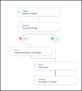 Ex :pour une mutation déclenchée par le changement de l’unité organisationnelle (UO) d’une identité, les étapes peuvent être le calcul du nouveau manager en fonction de la nouvelle UO, le retrait des rôles et des droits associés à l’ancienne UO, l’ajout des rôles et des droits associés à la nouvelle UO, la notification des managers et de l’identité concernés et la génération d’un rapport contenant les identités mutées ce jour-là.