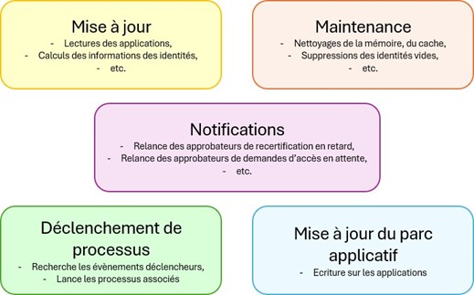 Lesétapes génériquesde cesprocessus sontla modificationet lecalcul d’informations,le retraitet l’ajoutde droitsd’accèsetderôles,l’envoidenotifications,lagénérationderapportsetc.