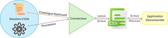 Le rôle du connecteur est de faire le lien entre les applications du SI et la solution. Il existe de multiples connec- teurs dont la principale différence est le type d’application à laquelle ils permettent la connexion. Ex : il existe des connecteurs Active Directory, SAP, JDBC, CSV, XML... Il est aussi possible de développer des connecteurs personnalisés pour se connecter à des types d’applications non couverts par les connecteurs par défaut.