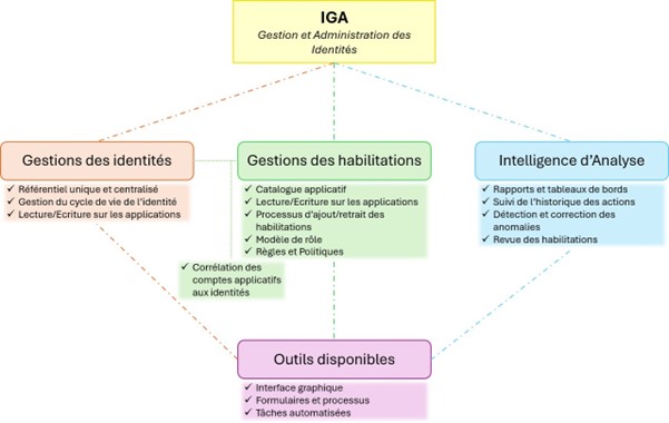 L’IGAcomprend la gestion des habilitations (ou droits d’accès) des identités au sein du SI.